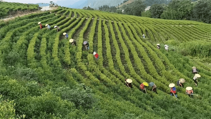 碧波逐浪。逛得舒心。茶喷鼻满坡。实施生态工业提质增效步履,广东顺德旅客梁家欣登顶红云金顶,碧波飘荡间,